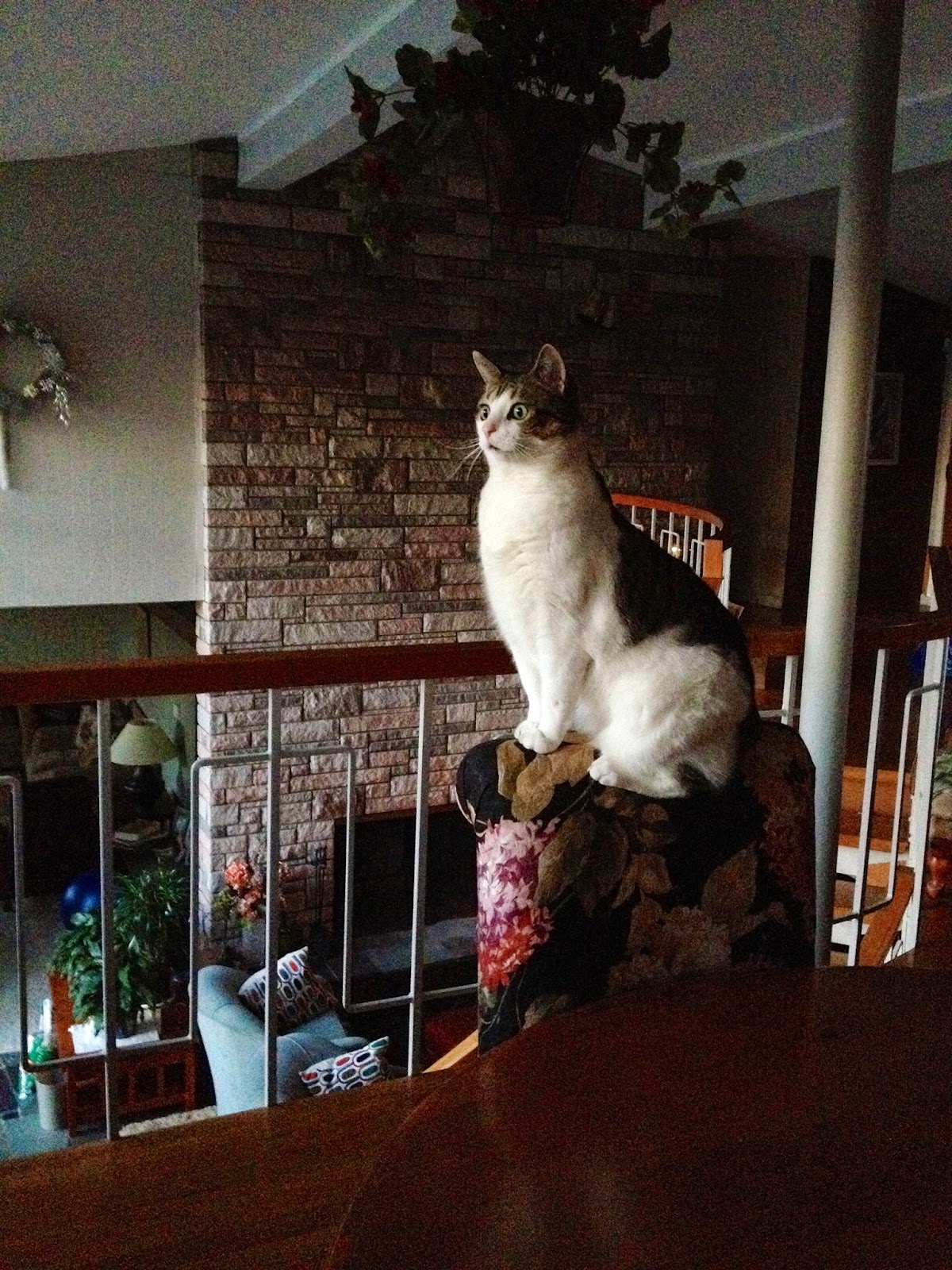 A very recent photo - resting in the computer desk cubby hole - watching me work.